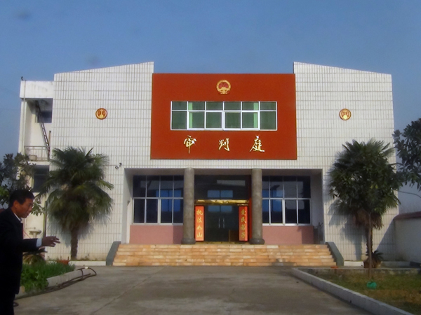 赵店人民法庭辖赵店乡、赤眉镇,辖区人口9.7万余人,面积262平方公里。现有干警2人,人民陪审员1人,近3年,年均结案260余件。原有的赵店人民法庭仅三间土木结构屋架房,1990年借“两庭”建设东风,建成了座西面东每层5间共两层砖混办公楼和座北面南共3间约150平方米的审判庭,法庭大门朝东,独成小院,总面积310平方米,建筑面积390平方米。