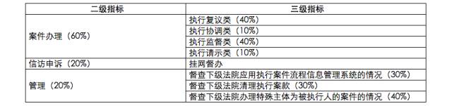监督管理主要考察上级法院对下级法院的监督指导工作,包括监督案件、事项的办理、信访申诉、督查等,其中,督查主要指对下级法院应用执行案件流程信息管理系统的情况、执行案款管理、终本案件管理、委托事项管理等情况、办理重点督办案件的情况进行督查以及开展执行工作约谈的情况。