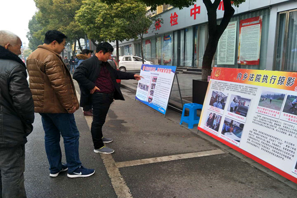 今天,作为法院公众开放日,该院还吸引了大量百姓前来参观庭审活动,观看内乡法院“高擎法律剑、宣战执行难”的视频短片。