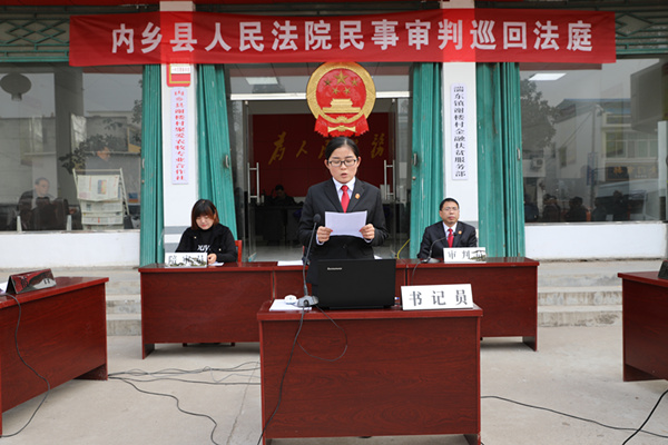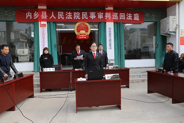 11月15日上午,河南省内乡县人民法院在该县湍东镇谢楼村巡回审理了一例二手车买卖纠纷案件。因案件当事人涉嫌诈骗,被当庭裁定中止该案民事部分审理,移送公安机关侦查。本案由该院副院长、员额法官杨红担任审判长,原、被告参加了庭审,第三人经依法传唤缺席。此次庭审邀请了河南映象网、河南法制报、大河网、新浪网、南阳电视台、南阳日报、南阳晚报等十余家新闻媒体,南阳市中级人民法院微直播团队进行了庭审直播,当地百余名群众参加了旁听。
