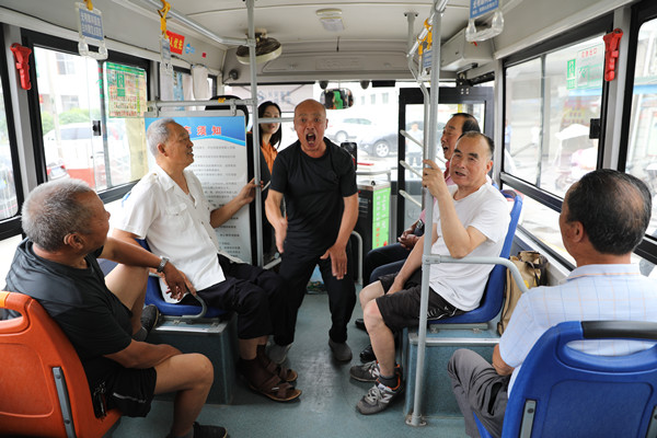 老同志们以饱满的热情、昂扬的激情、真挚的情感,用满腔豪情为党献上一曲曲颂歌,歌声嘹亮,激情满怀,个个精神抖擞,场面活跃,车内不时响起阵阵掌声,仿佛又回到当年上班时候的激情。