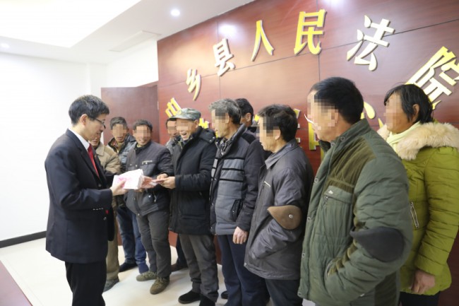 谢某家人将拖欠的农民工工资送到法院后,执行法官也当即联系刘某等16名农民工来到法院,将讨回的工钱发放至每个人手中,案件也顺利执结。