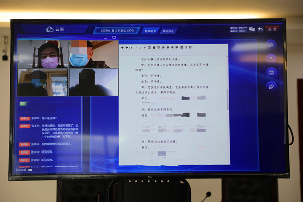 在庭审现场,电脑显示屏上清晰显示着法官和双方当事人的画面;屏幕里,双方当事人详细地向法官陈述诉辩意见;屏幕外,书记员飞速地记录着庭审全过程。经过法庭调查、举证、质证等法定程序,这场在线庭审以当庭调解的方式顺利结束。