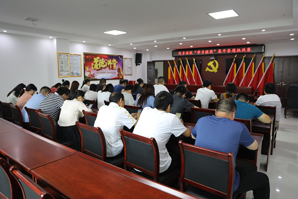 为使广大党员干部用好用活“学习强国”学习平台,将理论学习融于日常,使习近平新时代中国特色社会主义思想真正入脑入心,7月27日,河南省内乡县人民法院举办“学习强国”集中答题挑战赛,该院三十余名党员干部参加比赛。