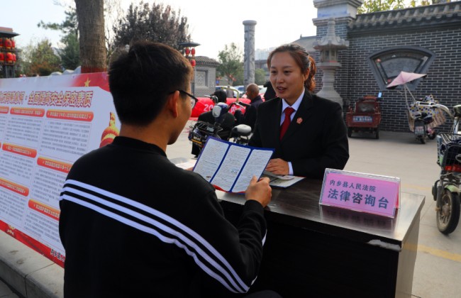 为进一步提升全民维护国家安全意识,筑牢反间防谍国家安全人民防线体系,11月1日,在《中华人民共和国反间谍法》颁布实施六周年之际,河南省内乡县人民法院组织干警在该县县衙广场开展《反间谍法》普法宣传活动,并提供相关法律咨询服务。