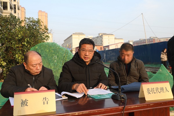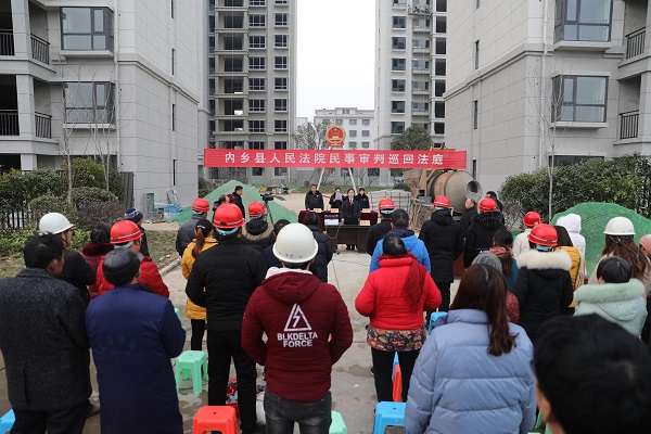 12月22日下午,河南省内乡县人民法院湍东法庭法官来到该县西城花园施工工地,巡回审理一起因建房安全事故引发的提供劳务者受害责任纠纷,50余名工程项目经理、工人和社会群众旁听了庭审。