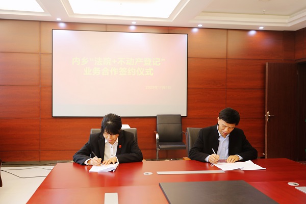 为持续优化法治化营商环境,深化执行联动长效机制,切实提高执行工作效率。11月8日下午,河南省内乡县人民法院与内乡县不动产登记服务中心举行“法院+不动产登记”业务合作签约仪式,不动产登记便民服务点在法院挂牌成立,正式开启不动产登记司法查控新模式。内乡县人民法院党组副书记、常务副院长李华,内乡县不动产登记局局长王新华出席签约仪式。