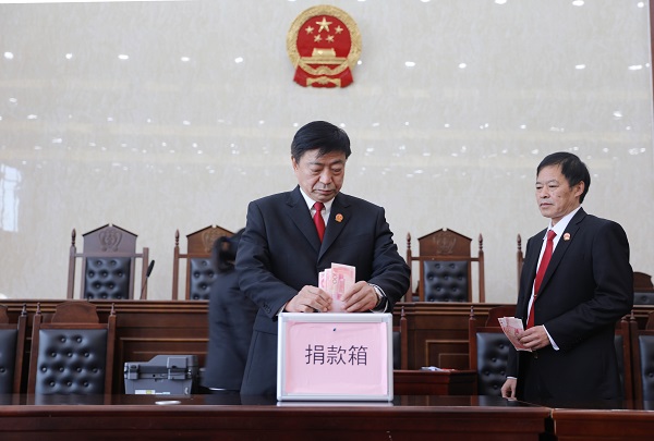 捐款现场,党组书记、院长刘子国带头捐款,全体干警积极响应,踊跃参加,自觉在捐款箱前排起长长队列,伸出援助之手,将一笔笔善款投入到捐赠箱内。现场共募集到资金1万余元,点点爱心,汇成暖暖真情,用实际行动帮助困难群众安全过冬、温暖过年。