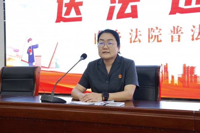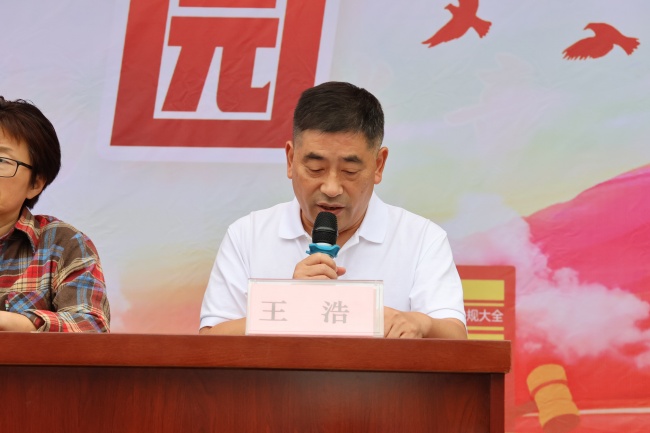 活动伊始,内乡县第四高级中学校长王浩代表学校,对莅临活动的各位领导表示热烈欢迎与衷心感谢。他指出,此次将庄严的国徽挂在明德楼前、把法庭“搬”进校园,用真实案例代替抽象法条,正是为了让师生“零距离”感受法律的温度与力度,推动“尊法成习惯、学法成自觉、守法成底线、用法成武器”,这既是法治教育的创新尝试,更是为同学们量身定制的“沉浸式”法治课。同时,他希望同学们通过活动明白“法律是‘约束线’,也是‘防护盾’”,将法治精神种进心里,筑牢青春防线,用知法懂法的清醒走好未来路。