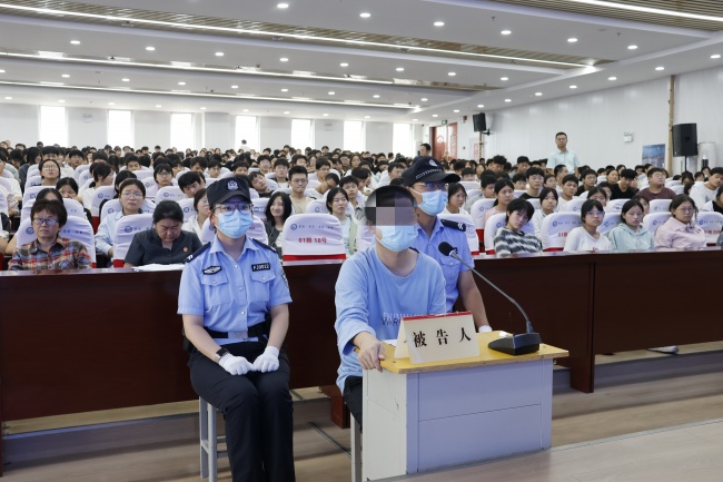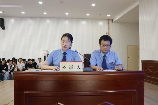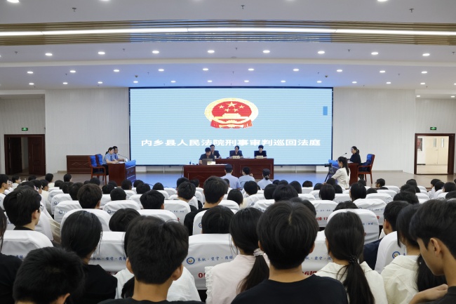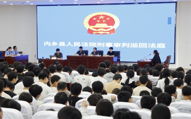 “内乡县人民法院刑事巡回审判法庭现在开庭!” 随着审判长敲响法槌,清脆的声音瞬间传遍会场,学生们不自觉地坐直身体,目光紧紧聚焦在审判台上。