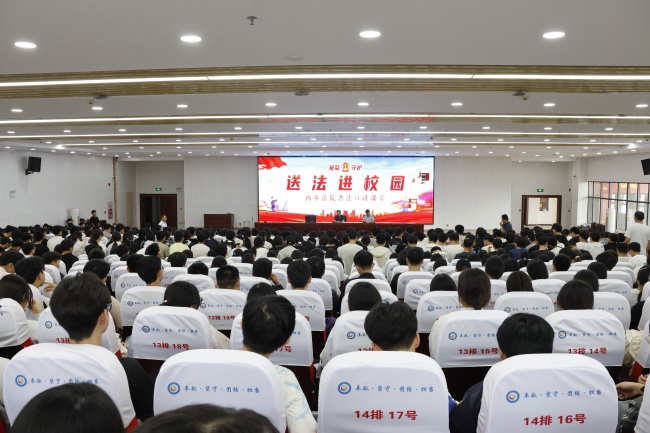 新学期伊始,为将法治教育融入开学第一课,切实增强青少年法治意识,有效预防校园欺凌与青少年违法犯罪,9月17日上午,河南省内乡县人民法院联合县教体局、县妇联走进内乡县第四高级中学,开展巡回审判进校园暨“雏菊・守护”普法宣讲活动。红色的审判台、醒目的法徽、整齐的旁听席…… 这场“真实庭审 + 专题宣讲”活动,让全校3000余名师生沉浸式感受法治力量,用司法温度为新学期学生成长筑牢安全屏障。