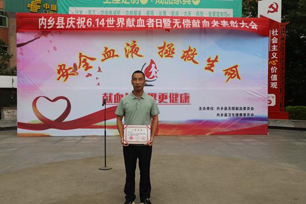 内乡法院干警程国敏无偿献血获国家级表彰 (2020-06-14)